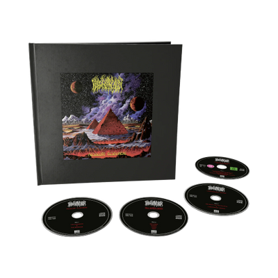 The official description of this version of Blood Incantation's Absolute Elsewhere album reads like so: "Limited Deluxe 3CD+Blu-ray Artbook (10-inch sized artbook with 52 pages [extensive artwork with loads of photos & liner notes] containing full album Absolute Elsewhere (CD1), All Gates Open (Original Motion Picture Soundtrack) on CD2, and the Luminescent Bridge EP (CD3 – first time released on CD format) // Blu-ray featuring the documentary “All Gates Open: In Search of Absolute Elsewhere” and the full album in Dolby atmos and 5.1 mix)"